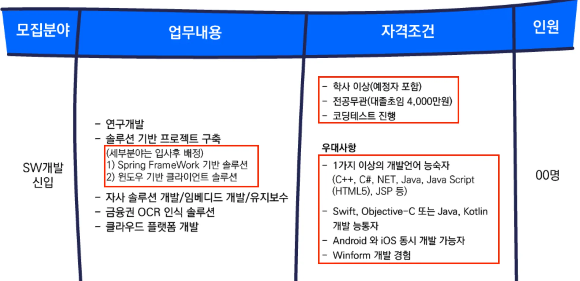 업무내용에 기재된 것과 같이 세부분야 배정은 입사후이기 때문에 java , Spring Framework에 기반에 개발을 안할 수도 있습니다.