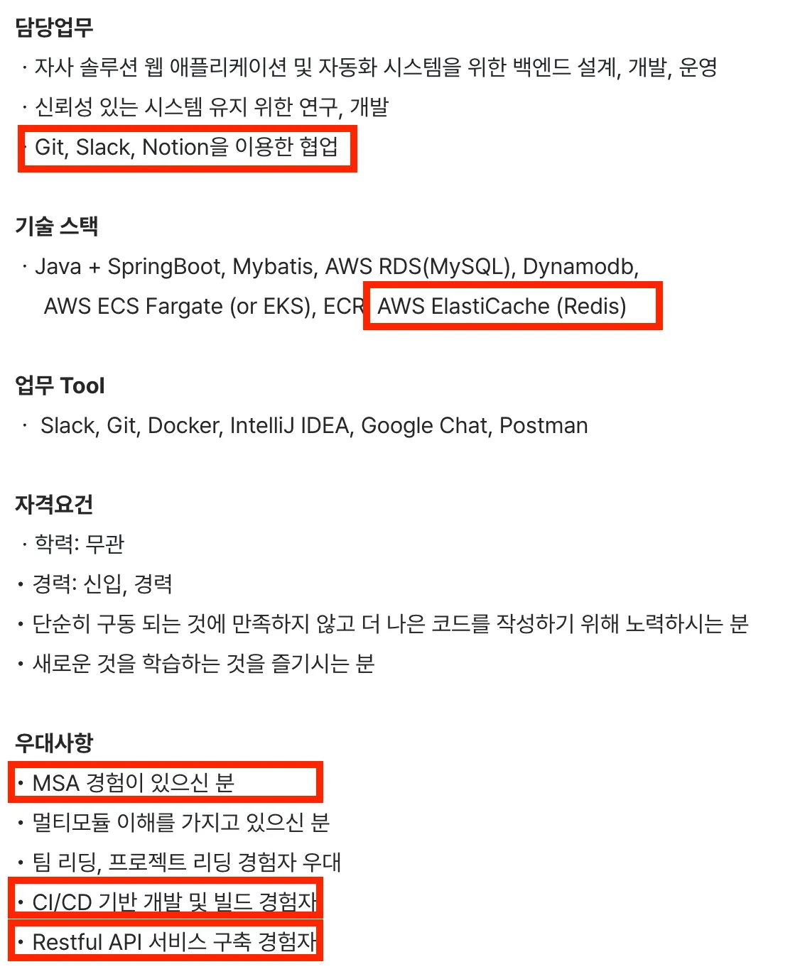 사용자나 데이터가 많지 않았다면 캐싱처리까지 필요 없었을텐데 해당 공고에는 솔루션 개발에는 이런 기술이 필요하다는 것을 신입으로 입사해서 배울것도 그만큼 있을거라고 생각듭니다.