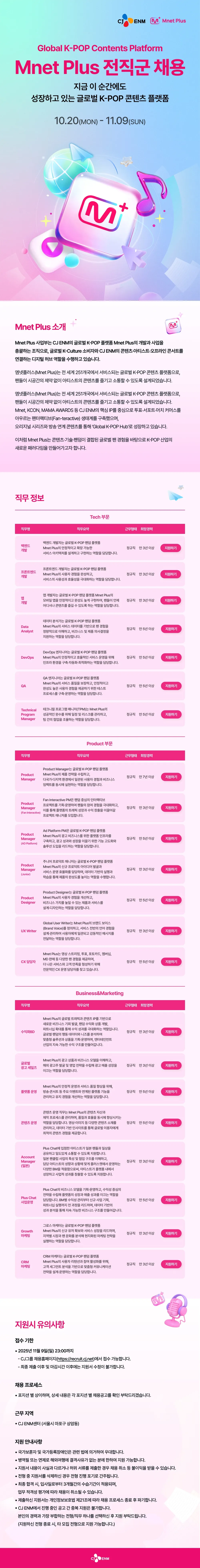 [CJENM(씨제이이엔엠) 채용] Mnet Plus 전직군 채용