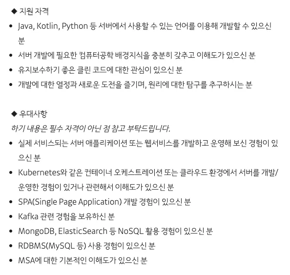 우대사항에 있는 기술스택들을 해보지는 않았지만 지원자격에 있는 내용을 충실히 준비했기 때문에 좋은 기회가 왔고 잡았다고 생각합니다.