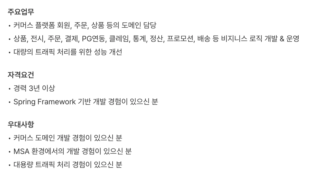 현실적으로 MSA 환경 , 대용량 트래픽 환경을 경험해볼 회사가 많지 않은데 경험해볼 수 있는 업무에 팀에 배정된다면 신입한테는 좋은 기회가 될 거라고 생각합니다.
