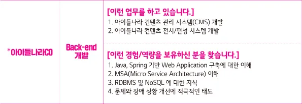 아이들나라 CO Back-end 개발 : https://careers.lg.com/app/job/RetrieveJobNoticesDetail.rpi?jobNoticeId=402705