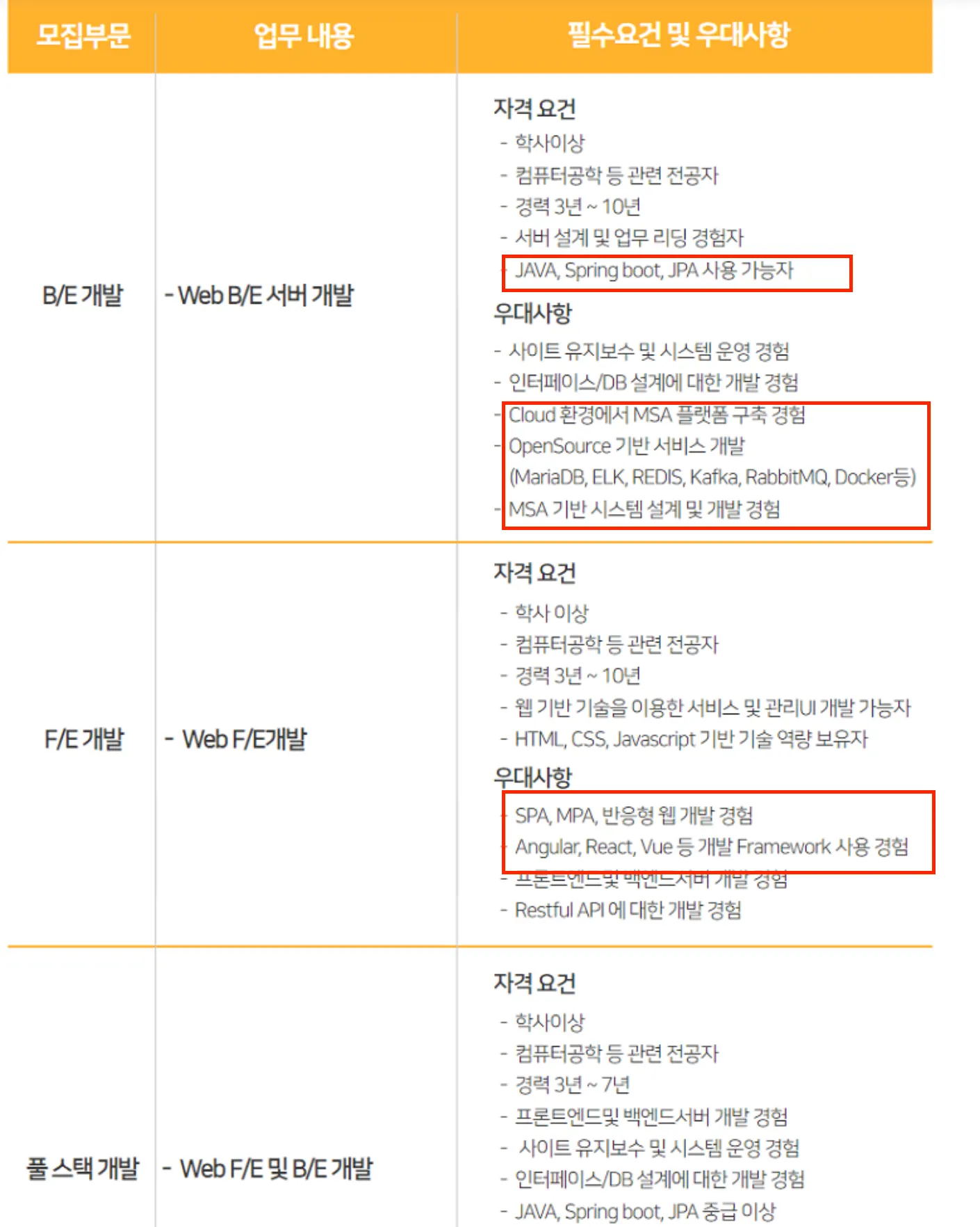 웹 개발자 경력 공고