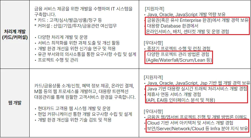 경력 - 처리계 개발(카드/커머셜), 웹개발